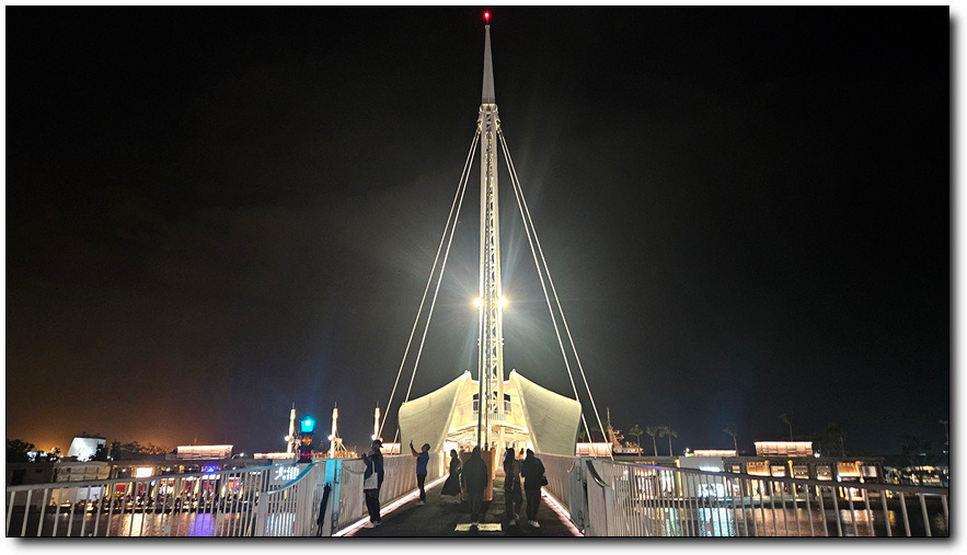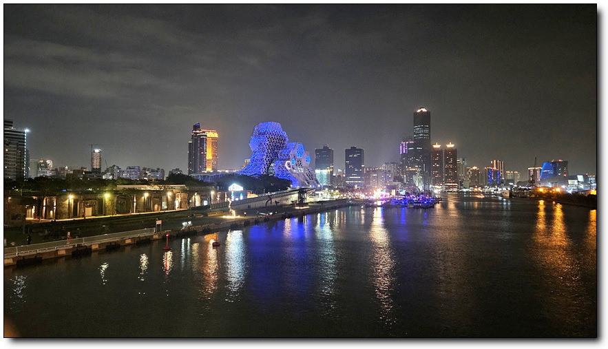 다시 가오슝 숙소로 돌아와 나선 산책길. 젊음과 예술의 중심 보얼 예술특구의 돌고래모양 다강교. 다리를 건너며 야경 감상.