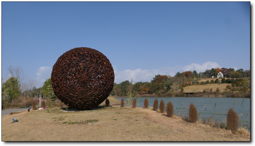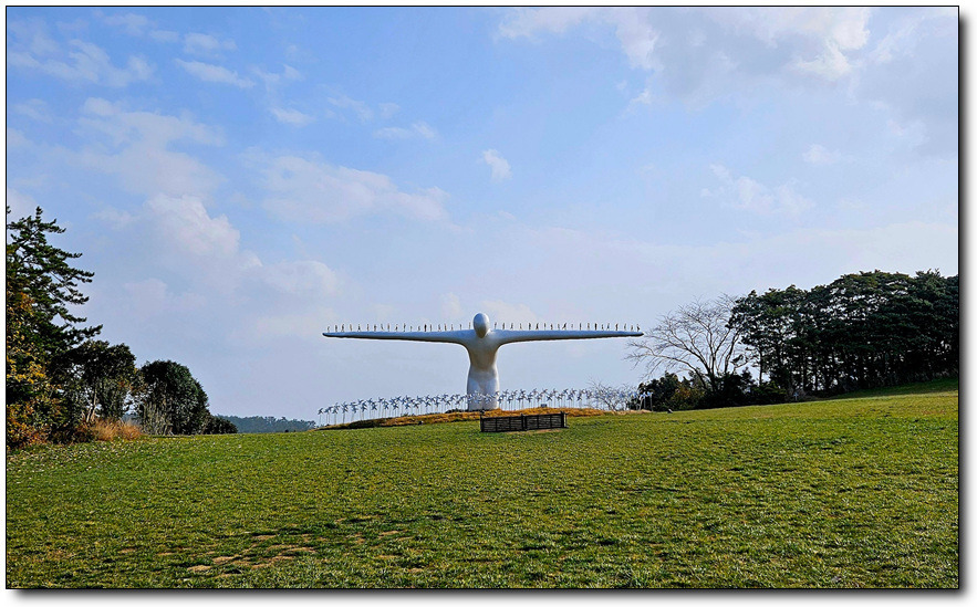 아~ 저건 무엇일까? 가까이 다가가 본다. 하늘 마루 탁트인 잔디밭에 특별한 작품 하나. 날아가듯 돌아보며 그 의미를 상상~~