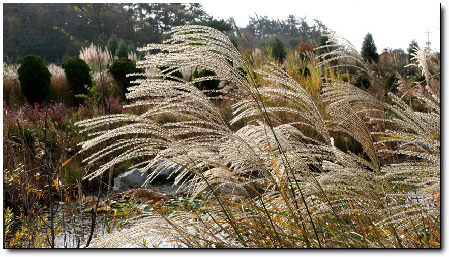 입구에서 국화터널이 맞아주더니 가을 바람에 억새가 곱게 춤추는 가을풍경.