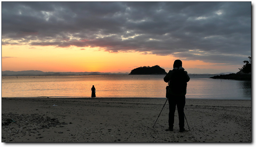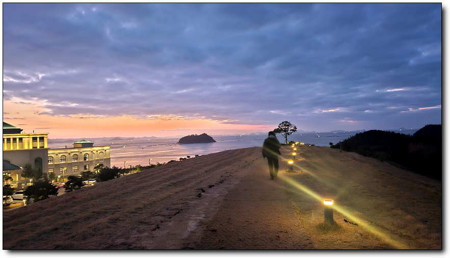 단단히 챙겨입고 카메라를 챙겨 솔비치 연결 계단을 내려와 작은 섬 소삼도 앞으로... 아무도 없는데 누군가가 벌써 해맞이를...