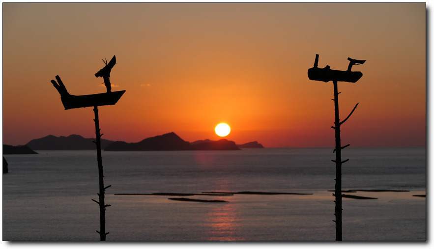 하루 종일 수고 했어. 내일 또 만나자~~ 어느새 붉은 하늘 아래 섬 사이로 숨어버리는 해님. 잘가~~
